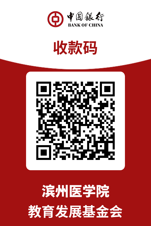 捐赠方式 1.现金捐赠方式:含人民币和外币,外币请按照实时汇率兑换成人民币。 2.实物捐赠方式:含教学科研仪器设备、电子设备、通讯影像音响器材、办公设备、各类图书资料、教学软件等。 3.项目捐赠方式:含设施建设、景观建设、奖学金、助学金等以具体项目为载体实施的捐赠。 捐赠途径 银行转账 账户名称:滨州医学院教育发展基金会 开户银行:中国银行烟台高新区支行 银行账号:227339260796 转账时,请以“项目简称-班级/单位-姓名-联系电话”的格式填写备注信息,以便我们及时联系到您。银行转账的方式我们能够比较快的得到进账信息,建议优先选用此种方式。 微信 微信支付请搜索“滨州医学院教育发展基金会”微信公众号,点击“助力滨医”中的个人捐赠平台,或扫描下方二维码进行捐赠。